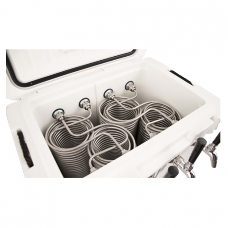 - La construcción de acero inoxidable en todos los componentes de servicio significa que esta Jockey Box servirá cerveza durante años