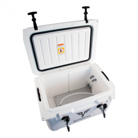 El Jockey Box KOMOS Rubicon es perfecto para aplicaciones domésticas de bajo volumen, como picnics, comidas al aire libre y visitas guiadas. Construido en una hielera Rubicon rotomoldeada ultrarresistente y con un cold plate de aluminio fundido para un enfriamiento compacto y eficiente. La hielera viene con orificios pretaladrados y solo toma unos minutos ensamblarla. Junto con el enfriador y la placa fría, este kit de jockey box incluye grifos Intertap de acero inoxidable, vástagos de acero inoxidable, resortes de grifo con cierre automático, manijas para grifos, línea de cerveza EVABarrier y accesorios Duotight para todas las conexiones.