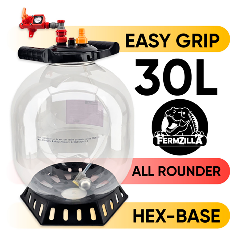 Tenga en cuenta que la temperatura máxima de funcionamiento del tanque FermZilla es menor cuando se utiliza bajo presión. Sin presión, es perfectamente seguro transferir mosto al tanque a una temperatura inferior a 55 °C (131 °F) o utilizar líquidos calientes a una temperatura inferior a esta para la limpieza. Bajo presión, asegúrese de mantener la temperatura de fermentación por debajo de 35 °C (95 °F) y el fermentador en un ambiente con una temperatura ambiente inferior a 35 °C (95 °F). Esto es especialmente importante al fermentar con levadura kveik. Se sabe que estas cepas fermentan a altas temperaturas si no se utiliza un control de temperatura. Exceder la temperatura máxima de funcionamiento puede dañar el tanque, acortando su vida útil o provocando una pérdida repentina de presión. Incluso con un uso adecuado, recomendamos reemplazar el tanque cada dos años.