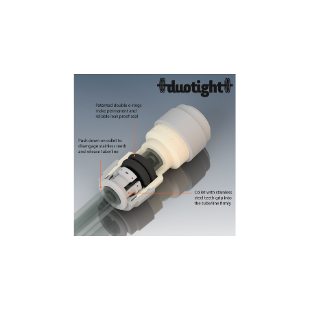 Este accesorio Duotight a rosca de cerveza hembra (5/8" BSP) es perfecto para conectar la línea de gas a los acopladores del barril. Aunque podría usarse con una manguera EVABarrier de 9.5 mm como línea de cerveza, esto solo se recomendaría para sistemas de extracción larga donde la línea de cerveza tendrá una longitud de 6 a 7.6 Metros.