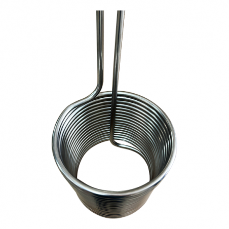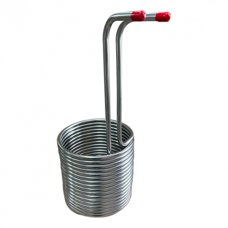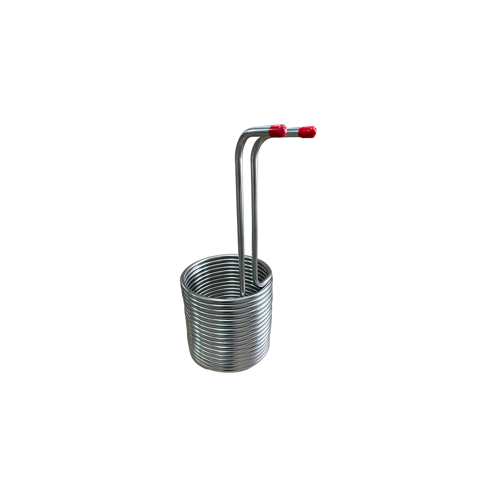 Un enfriador de mosto asequible fabricado con tubos de acero inoxidable de 50' de 1/2''.